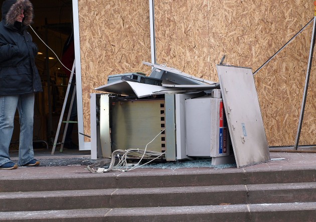Неа, не успели, но разворотило там всё красиво. Его взрывали, поэтому и стекла вокруг банкоматовской дырки нема. =)